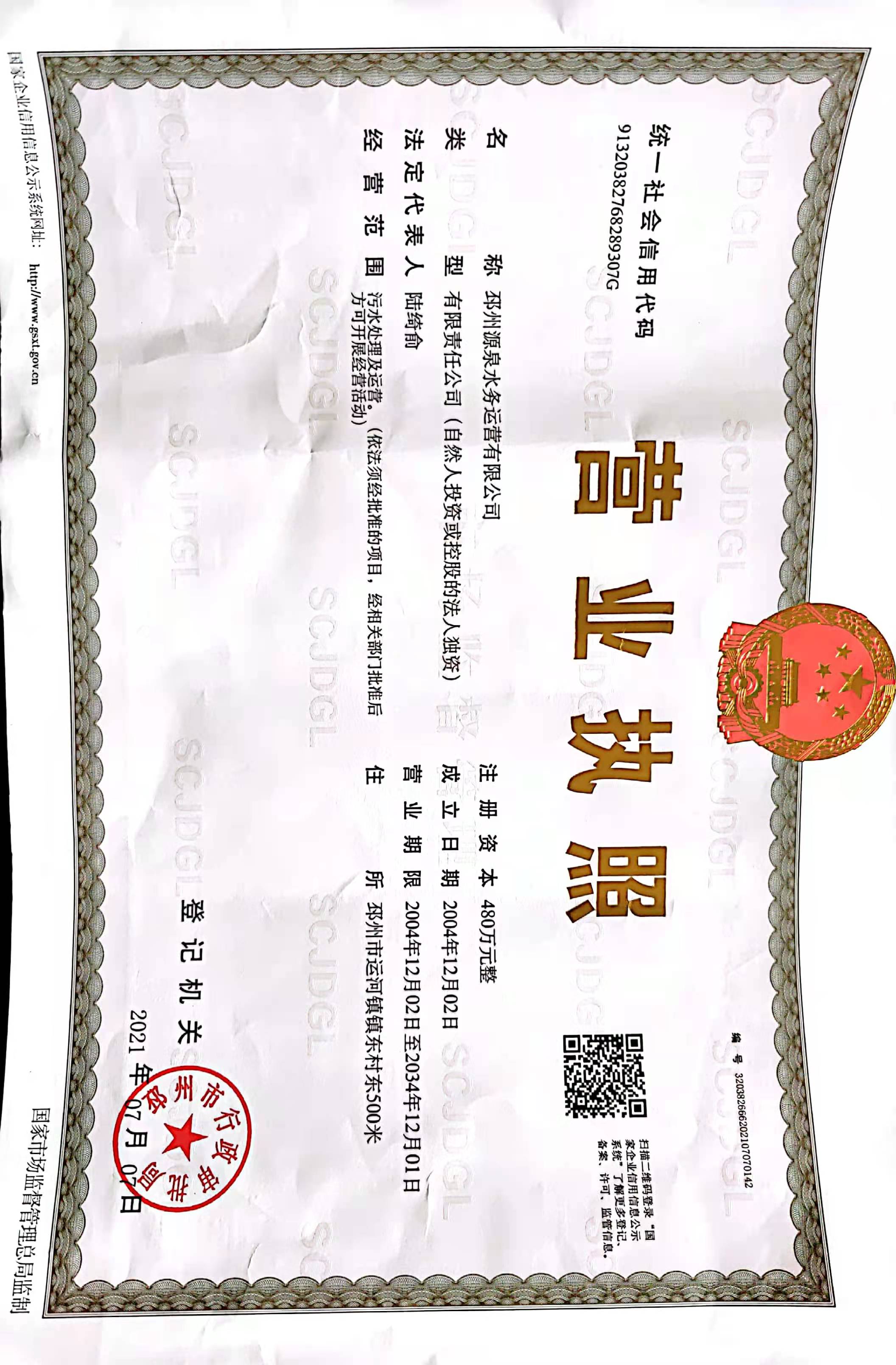 2004年邳州市政府將該工程以TOT模式實(shí)行市場化運(yùn)作,通過公開競標(biāo),由徐州源泉環(huán)保工程有限公司(現(xiàn)為江蘇大眾水務(wù)集團(tuán)有限公司)獲得該工程30年的經(jīng)營權(quán)。特許經(jīng)營期滿后,該污水處理廠將完好無償?shù)匾平唤o市政府。2005年5月1日邳州源泉水務(wù)運(yùn)營有限公司接管運(yùn)營后,充分發(fā)揮自己的專業(yè)優(yōu)勢與管理優(yōu)勢,科學(xué)管理,規(guī)范運(yùn)營,確保出水水質(zhì)優(yōu)于GB18918—2002城鎮(zhèn)污水處理廠污染物排放標(biāo)準(zhǔn)一級標(biāo)準(zhǔn)B標(biāo)準(zhǔn)。2013年根據(jù)國家“十二五”淮河流域水污染防治規(guī)劃要求,邳州市委市政府及相關(guān)部門要求公司啟動一期工程提標(biāo)改造項(xiàng)目,出水標(biāo)準(zhǔn)由GB18918-2002一級B標(biāo)準(zhǔn)提高到A標(biāo)準(zhǔn),提標(biāo)改造工程于